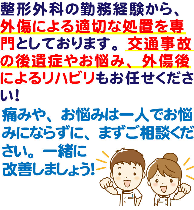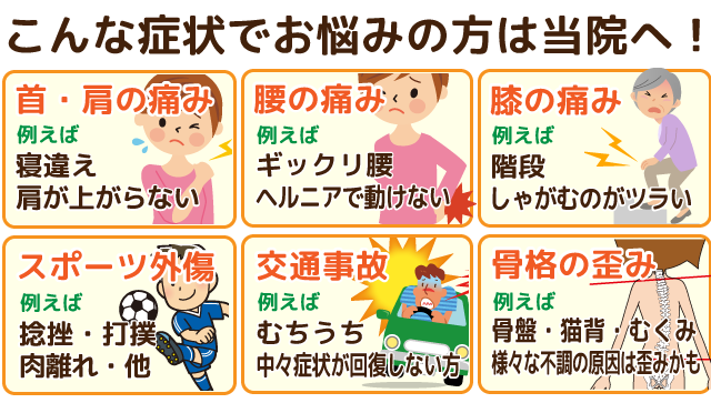 葛飾区亀有の整骨院。抜群の交通利便性!亀有駅から徒歩6分!ミナト整骨院。交通事故(むちうち)腰痛・頭痛・骨盤矯正。どこにいっても痛みの改善ができなかった方は是非当院へお越しください。痛みの症状を根本から改善を目指します。午後9時までまで営業。ゆとりの施術をご提供いたします。整形外科勤務経験も豊富の院長の施術で、根本改善できると人気の整骨院です!