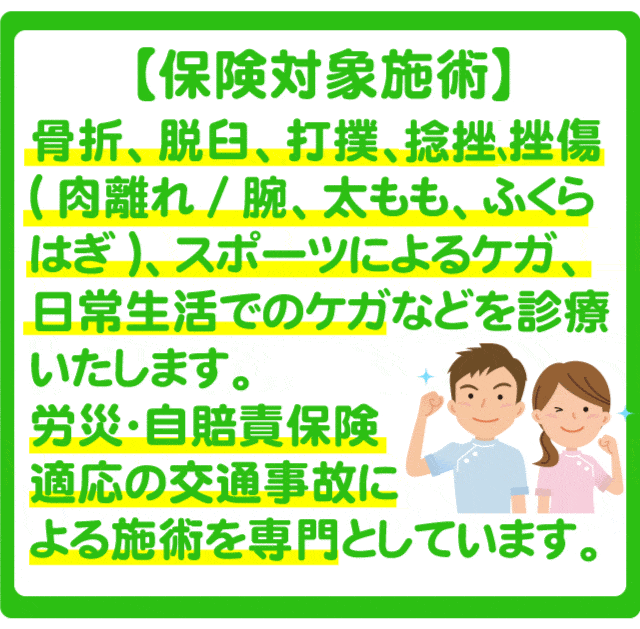 骨折、脱臼、肉離れ、捻挫、打撲の処置、スポーツによるケガはお任せください!